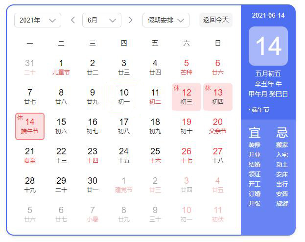 秦晉電子2021年“端午節”放假安排